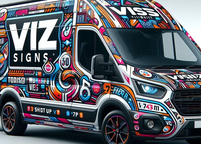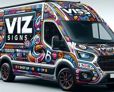 "Professional vehicle signage that turns your car, van, or fleet into mobile advertisements. Boost your brand visibility with vibrant designs tailored to make an impact."